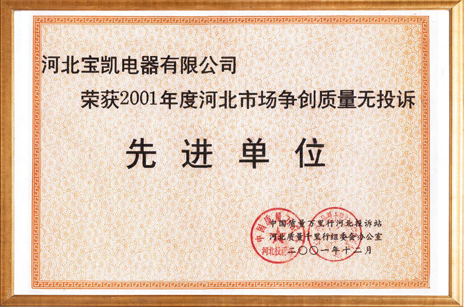 河北市场质量无投诉先进单位
