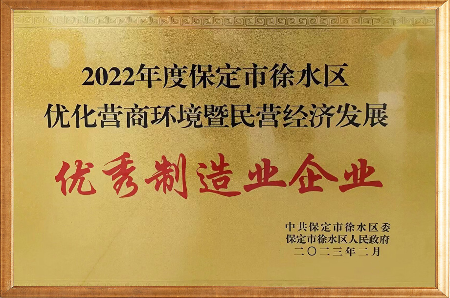 保定市优秀民营企业证书