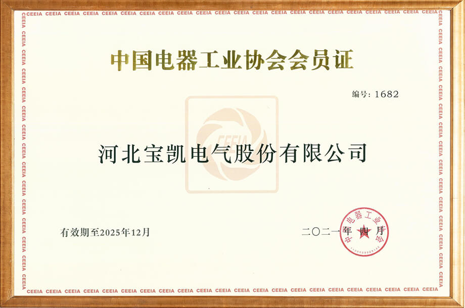 中国电器工业协会会员证2021年颁发